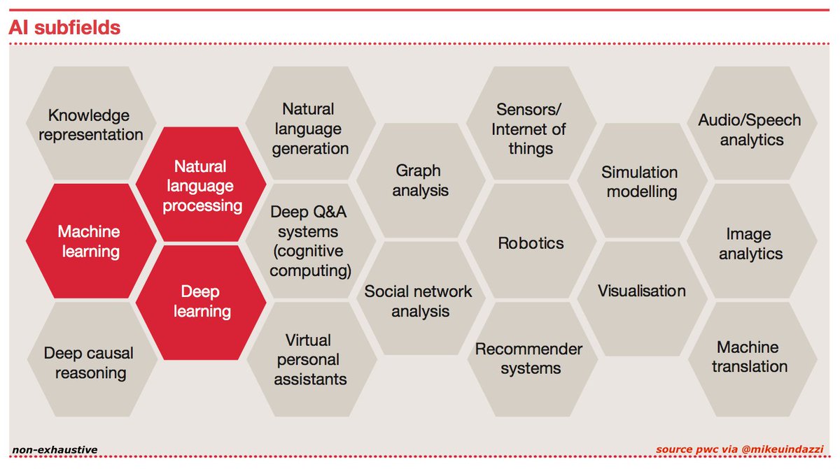 18 subfields of #ArtificialIntelligence (non-exhaustive list) #MachineLearning #DeepLearning #NLPpic.twitter.com/vz52vBmzBc
