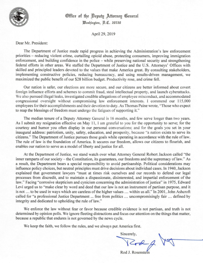 BREAKING: Deputy AG Rod Rosenstein resigns from the DOJ, effective May 11. Rod Rosenstein is a Clinton crony who obstructed justice & aided the fraudulent investigation against an innocent, democratically elected President. He should of been removed from the DOJ a long time ago.pic.twitter.com/0LSqd3icjC