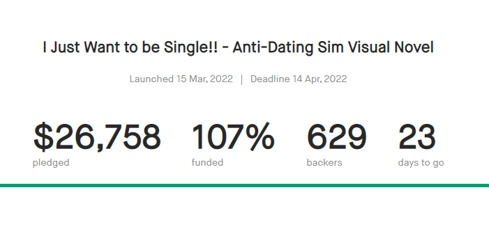 WE'RE FUNDED! We did it!!! We can finish the game! Thank you everyone who pitched in and supported us, I love you all! (platonically) Here's a post with my full thoughts and more importantly, OUR STRETCH GOAL REVEALS!! https://www.kickstarter.com/projects/studiotsundere/i-just-want-to-be-single/posts/3461150 …pic.twitter.com/hm10z6H8g5