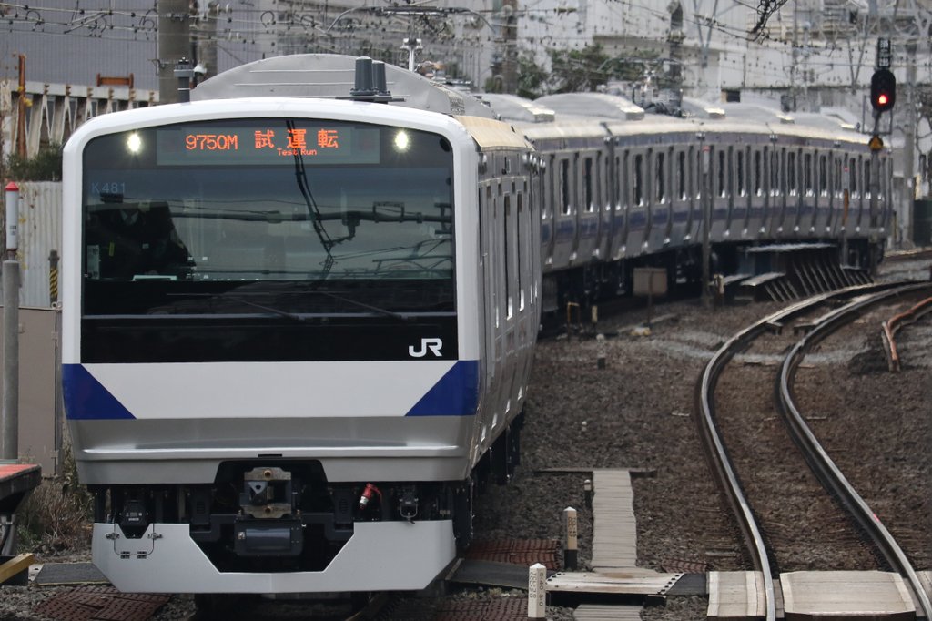 2020/2/4 試9750M ※J-TREC横浜出場試運転 E531系勝田車10車(カツK481編成+K480編成) 来月ダイヤ改正での常磐線全線復旧に向けて総合車両製作所横浜事業所で製造されたE531系付属編成2本が、本日出場し所属区へ回送されました 逗子での入換はDE10-1666[新]が担当しましたpic.twitter.com/iQbPsh5c8d