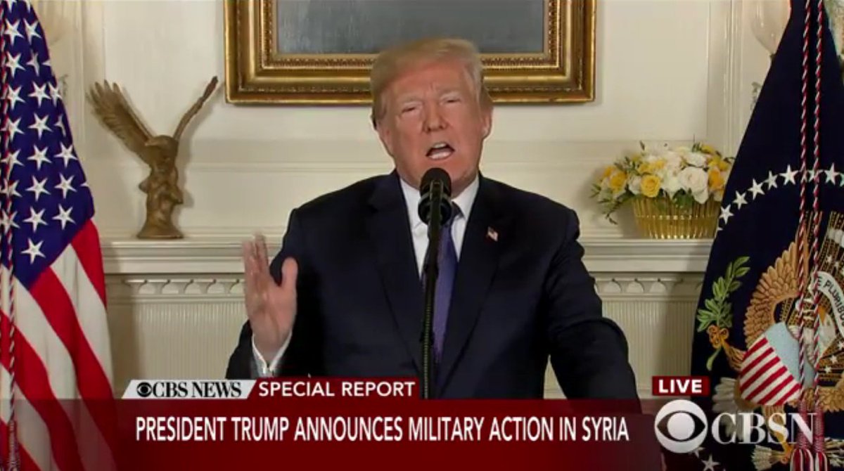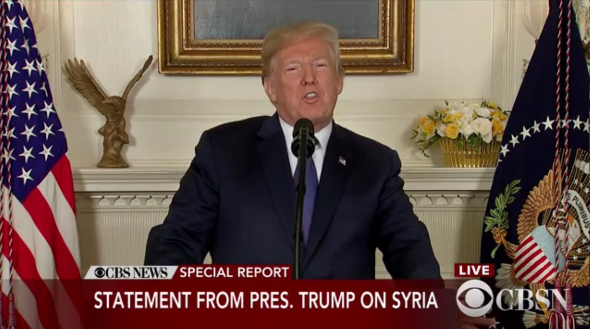 TRUMP: We pray that God will bring comfort to those suffering in Syria... Thank you, and goodnight. French, British and American military operation now underway. 4:10 AM Damascus time.