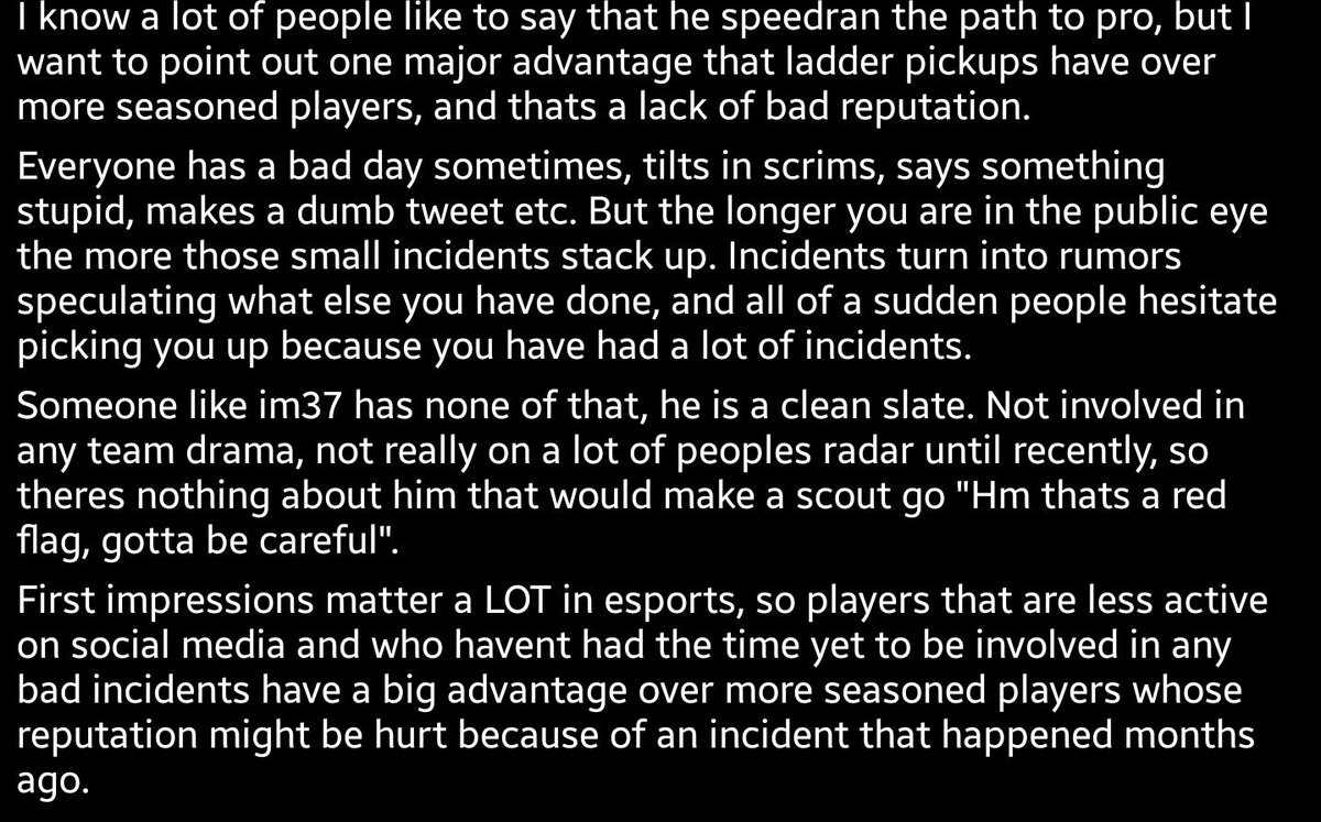 In response to im37 and even frd getting picked up here's a quick explanation of why "under the radar" players have a big advantage when it comes to making OWL over more seasoned players. Tl;dr: No reputation is better than a bad reputation, and its easy to get a bad reputation.pic.twitter.com/fiwPp2fbea