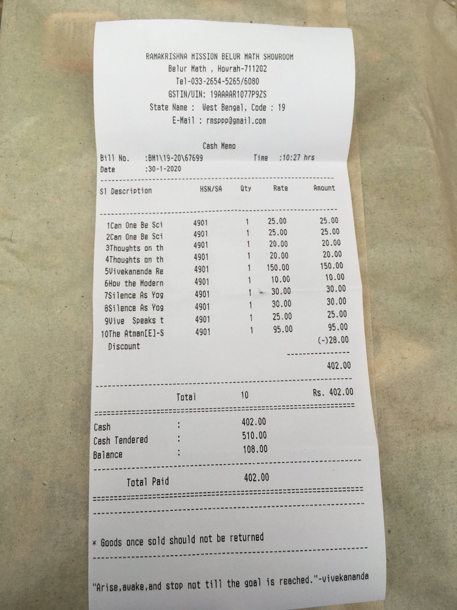 10 books for ~$5 USD at the Belur Math bookshop (!) Granted several of them were little pamphlets...pic.twitter.com/Zz3MD5sOV9