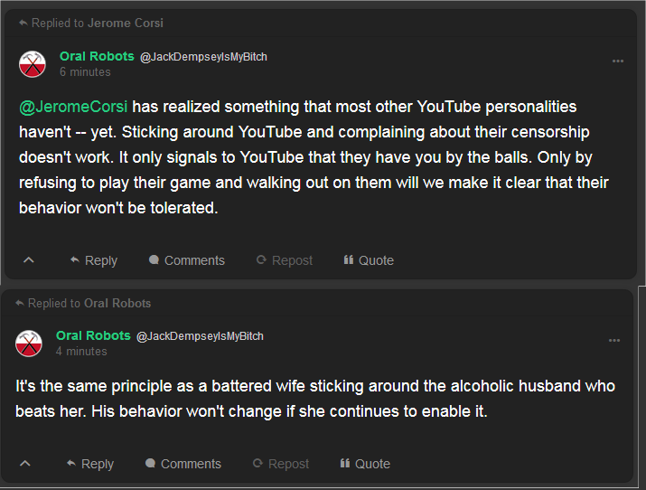 #boycottyoutube #YouTubePurge @Styx666Official @Cernovich @posobiec @YouTube @TeamYouTube @tracybeanz What I'm seeing here is a clear case of Stockholm syndrome. When will you realize the globalist fascists WILL NOT GIVE AN INCH?https://twitter.com/MilesHardingEsq/status/969598166361411585 …