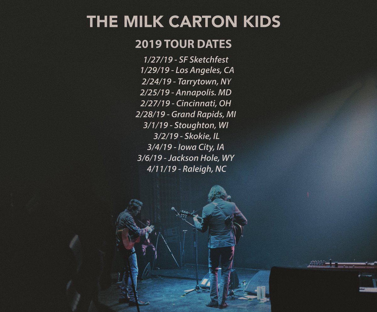 Announcing our first batch of 2019 tour dates, including a variety show at Largo in LA with musician and comedian friends. Most shows on sale Friday. Check it. 1/27/19 - SF Sketchfest - Marines’ Memorial Theatre - The Milk Carton Kids Sad Songs Comedy Hour (Cont.)