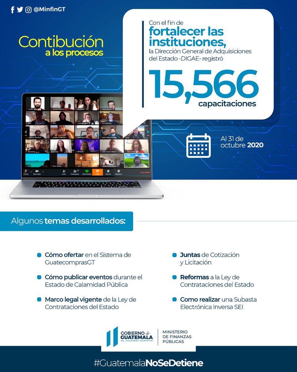 #MinfinGT nos enfocamos en la modernización del Estado, capacitando a 1,405 usuarios de entidades públicas, de forma virtual, acerca del buen uso del Sistema Integrado de Administración Financiera#SIAF#GuatemalaNoSeDetienepic.twitter.com/vkIdI0CkNP