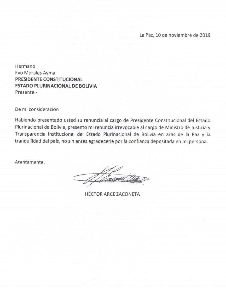 Pido a mi pueblo con mucho cariño y respeto cuidar la paz y no caer en la violencia de grupos que buscan destruir el Estado de Derecho. No podemos enfrentarnos entre hermanos bolivianos. Hago un llamado urgente a resolver cualquier diferencia con el diálogo y la concertación.