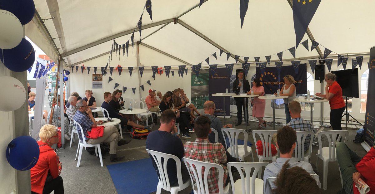 @venstredk ikke vil have fjernet landbrugsstøtten. Vi kæmper for at få den sænket og fjernet told og barrierer. Handel er win-win”@JanEJoergensen i debat om migration hos@EuropaBev med bl.a@BosseStine#fmdk#dkadpic.twitter.com/pU4gPGPfQb