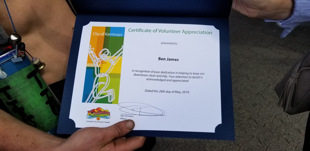 #volunteering to keep Downtown Kamloops clean, this certificate was just a small token, but we were pleased he was so pleased to be recognized. Thank you, Ben!https://twitter.com/NeverABlindEye/status/1143737953077751808 …