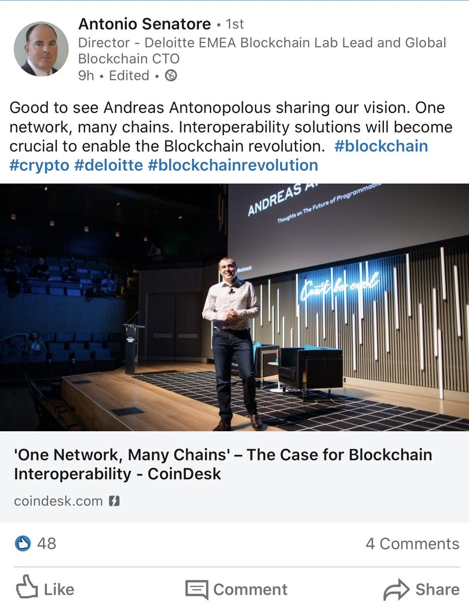 Deloitte: Good to see Andreas Antonopolous sharing our vision. One network, many chains. Interoperability solutions will become crucial to enable the Blockchain revolution.
