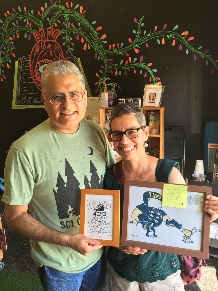 @PhysioEdProf & i enjoying our new@laloalcaraz art (bourbon-stained!?). Previously donated by@GustavoArellano to@LibroMobilepic.twitter.com/OgeXkz8wrW