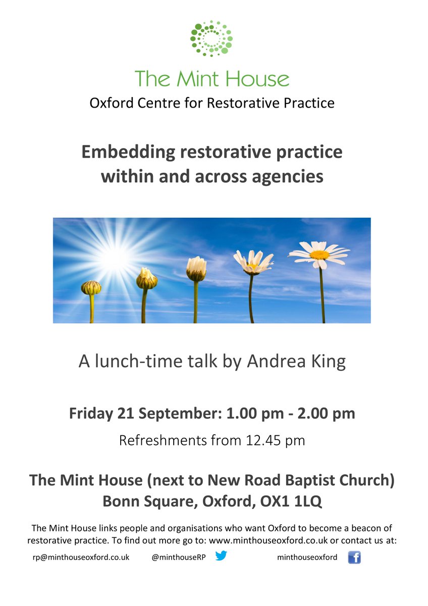 RESTORATIVE JUSTICE - A practice based workshop on Community Building, Mediation, and Conflict Resolution. THURSDAY 1st March at THE MINTHOUSE 10:00-16:00 ALL WELCOME!! For more info, contact John (johnboulton@synrj.uk)pic.twitter.com/RiA7H8KjvP