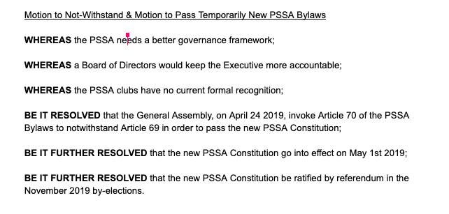 Finally we are discussing the sweeping changes to be made to the PSSA's by-laws.