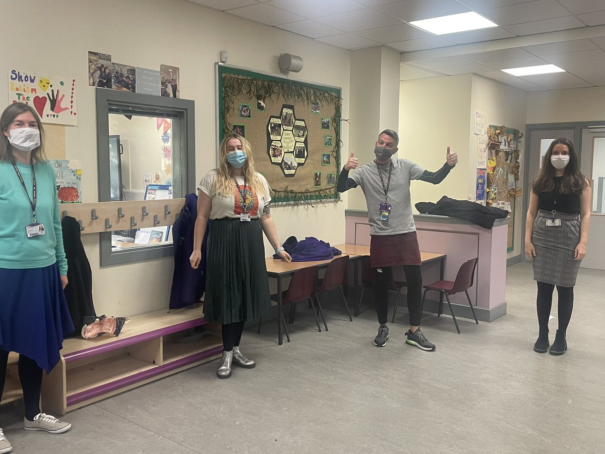 We’re hoping to get as many staff and pupils wearing skirts as we can. So, if you’re willing to share, please send your children into school with clearly labelled skirts for others to wear. Kilts or costume skirts would work too