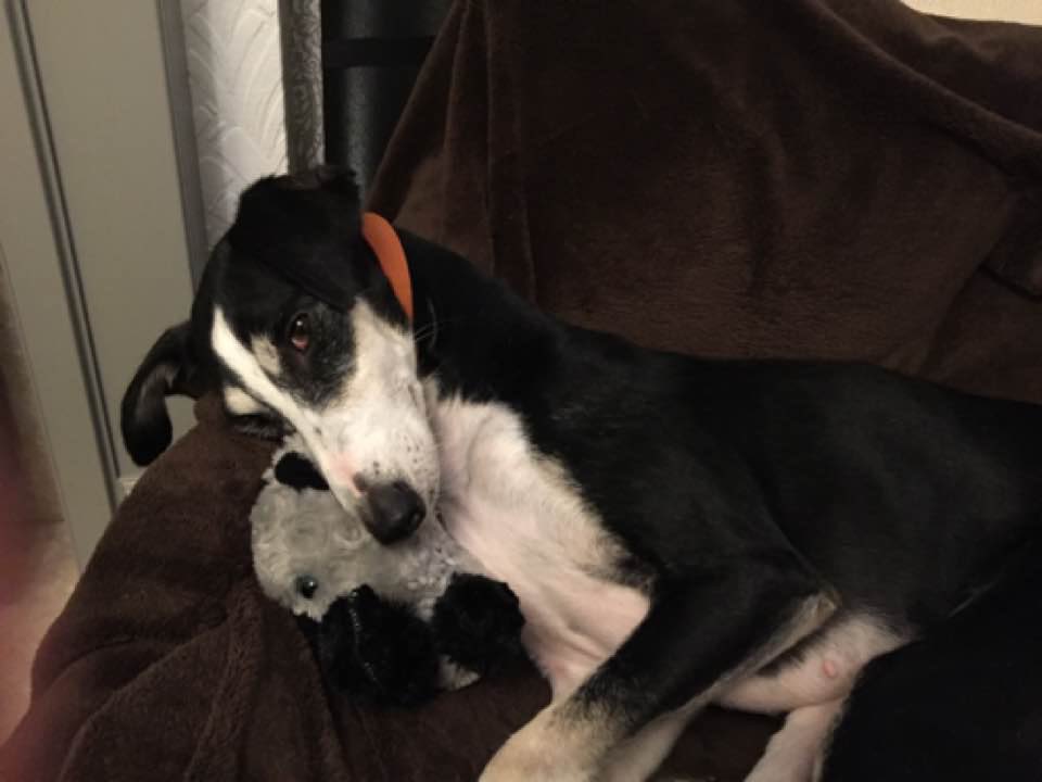 MISSING after being hit by a car at 5pm this evening in Manchester/Oldham. Black & White Lurcher, tan collar, has coat on. Read comments for more details. Please Share.