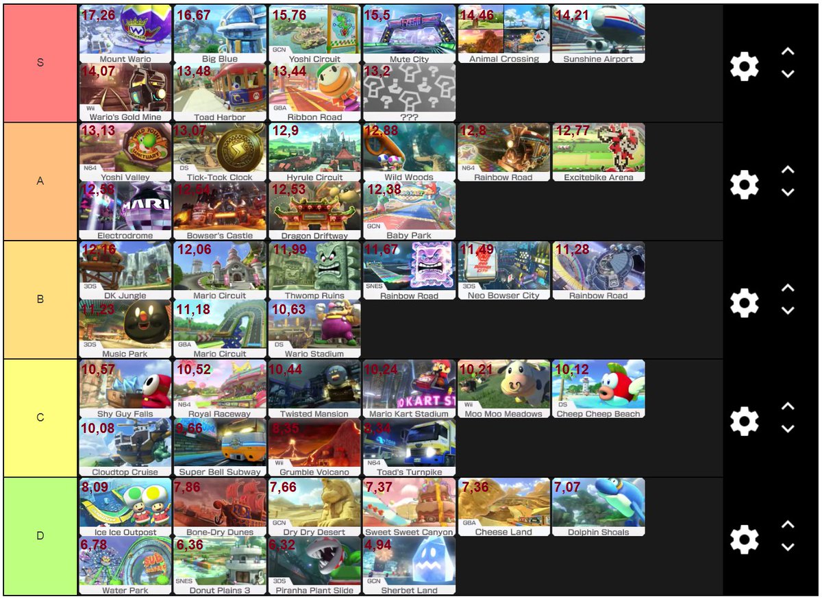 On a fait ça en live, à gauche, ma Tier List très controversée des circuits de Mario Kart 8 Deluxe (j'attends vos threads sur moi), et à droite, la Tier List des viewers, avec tous les circuits triés par note sur 20, classement censé être représentatif.pic.twitter.com/3nLh9MZJ6I