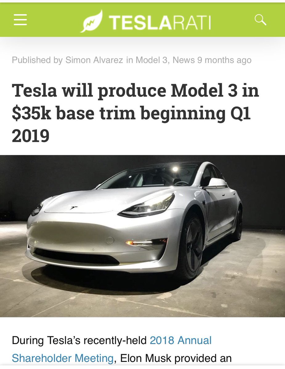 On 6/5/18 at the @Tesla shareholder meeting, @elonmusk stated that the $35k Model 3 would be available Q1 2019. On 5/23/18, he gave March 15, 2019 as the Model Y unveiling day. These aren’t reactionary moves if they were planned mid last year. #Logic $TSLApic.twitter.com/oqhMgOwbB2