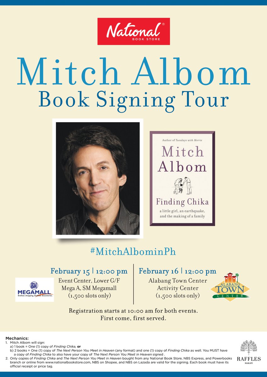 Due to the recent developments with the 2019 novel coronavirus in the country, the book signing events originally scheduled for February 15 and 16, 2020 are postponed for the safety of everyone involved. #MitchAlbomInPH #NBSevents #NBSnews