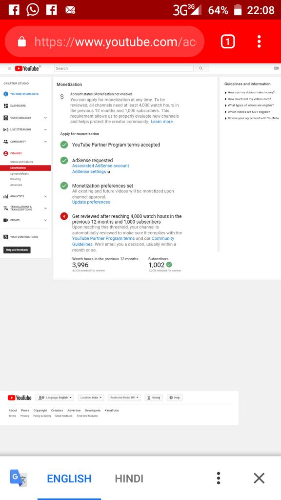 Yesterday my channel total 4007 watchtime and 1000 complete...and its waithing under channel review...
