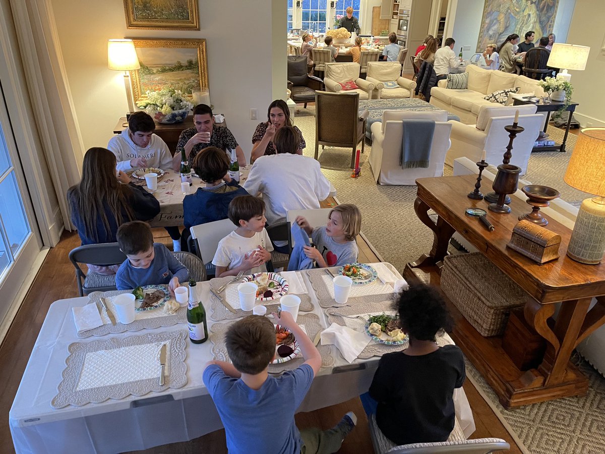 We unexpectedly had all 5 of our sons and their families come to dinner. What began as a meal for 10 became a meal for 30 of us. Only 7 of our family missing. Peeled more potatoes, boiled more carrots and broccoli, stretched the pot roasts, and set up folding tables and chairs.pic.twitter.com/Rh39nG70gA