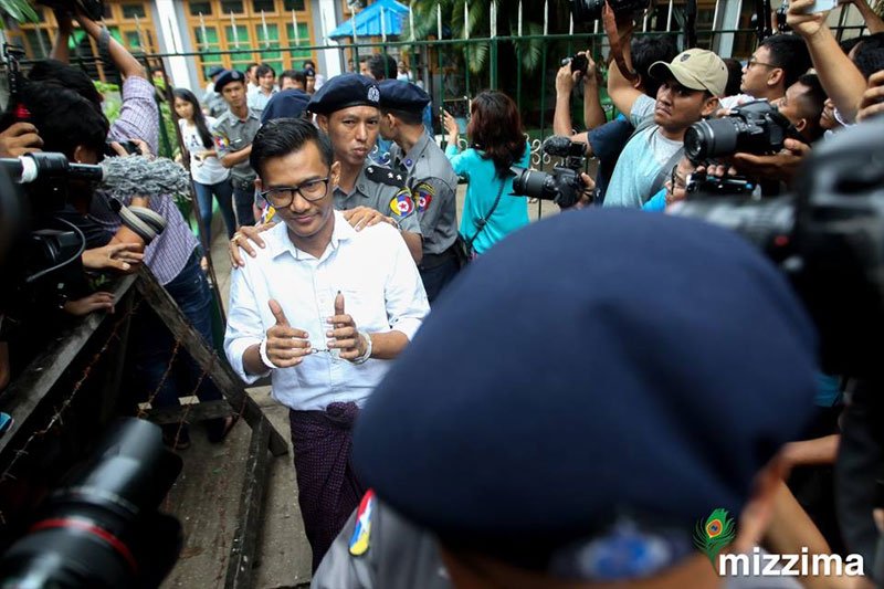 Journalists from @ElevenMyanmar News including chief editor sent to #Insein Prison | http://bit.ly/2PtA0f8 pic.twitter.com/m0RPEvHkd6