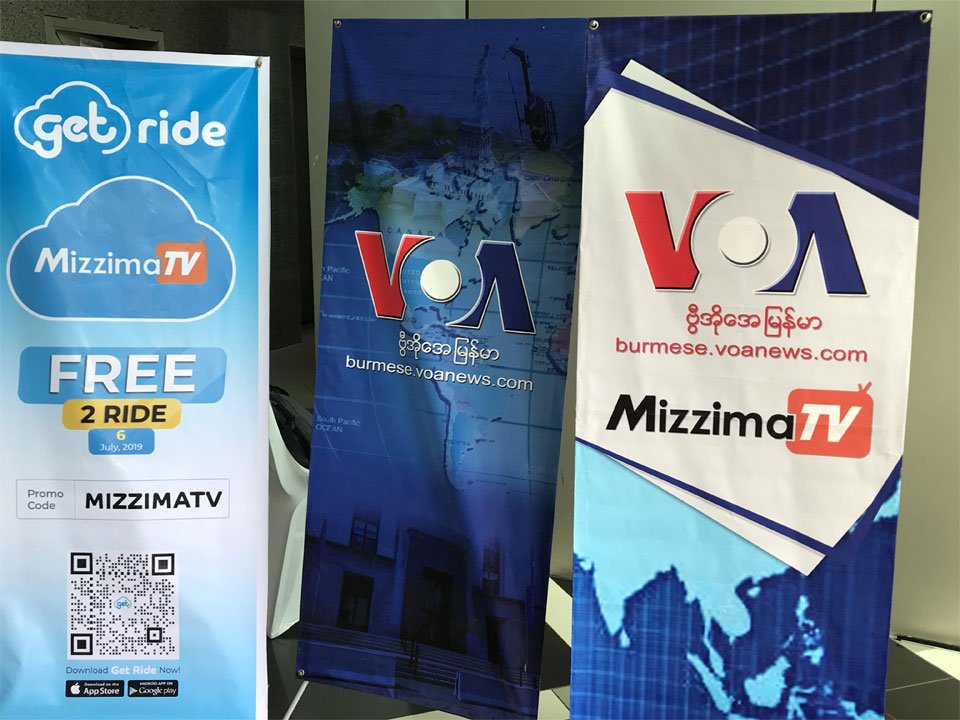 #MizzimaTV promotion event accompanied by Get Ride, Ooredoo and VOA at Diamond Plaza in Mandalay on 6 July 2019 | http://bit.ly/2L2Z5Ph pic.twitter.com/2hGDGZEezD