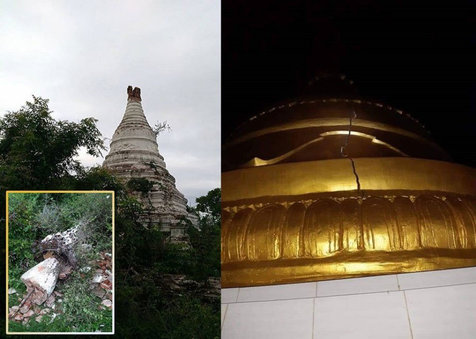 #Earthquake damages pagodas in #Sagaing http://bit.ly/2jVi56j pic.twitter.com/oFKxZdCtY0