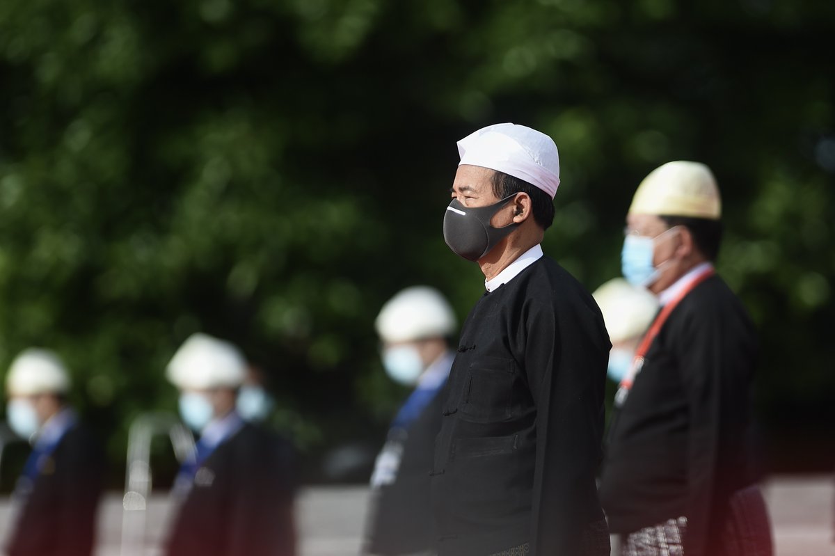 #Myanmar's State Counsellor and Foreign Minister Aung San Suu Kyi wears gloves and a face mask as she pays her respects to her late father during a ceremony to mark the 73rd anniversary of #MartyrsDay in Yangon on July 19, 2020. Photo: Ye Aung Thu/AFPpic.twitter.com/apR1Asjsfq