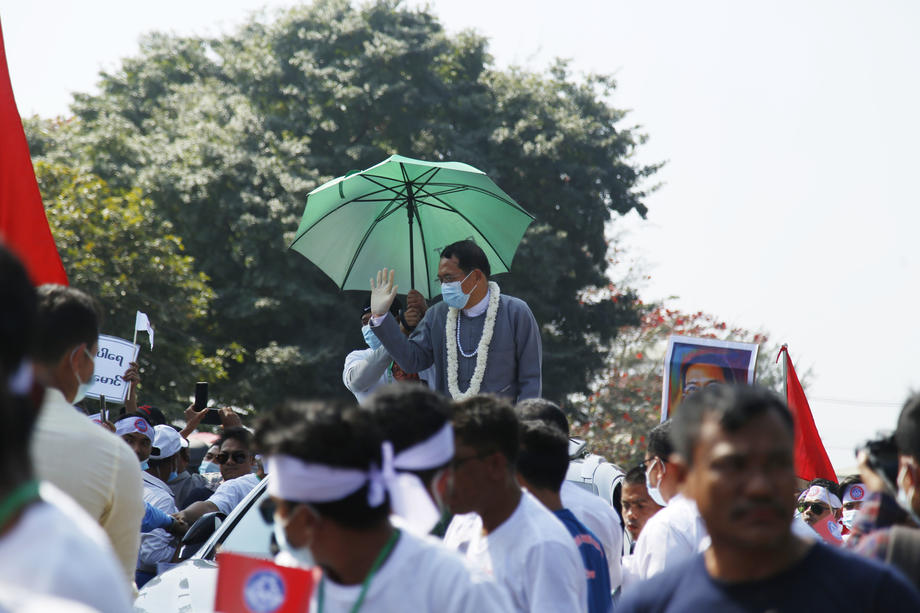 Rakhine nationalist Aye Maung arrives to Sittwe after he was released, in Sittwe, #Rakhine State, #Myanmar, 18 February 2021. EPA-EFE/NYUNT WINpic.twitter.com/gBzXOrvXao