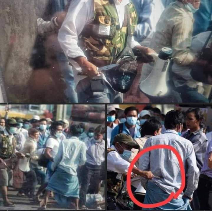Myanmar Military Juntas hired them with 5,000 Kyats per day for a person to create VIOLATION against Myanmar Police Force and to deceive UN and the world that Burmese people do so.. Remember we never violate. We protest peacefully. If you see Violation, it's not us.