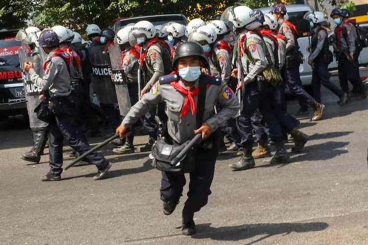 လက်နက်မပါတဲ့ပြည်သူကို အားမန်အပြည့်နဲ့ရိုက်ရန်ပြေးလာတဲ့ရဲ (မြေနီကုန်း) ဓာတ်ပုံ- sit Htet Aung ဖေဖော်ဝါရီလ ၂၆၊၂၀၂၁pic.twitter.com/PBdmDRYfUH
