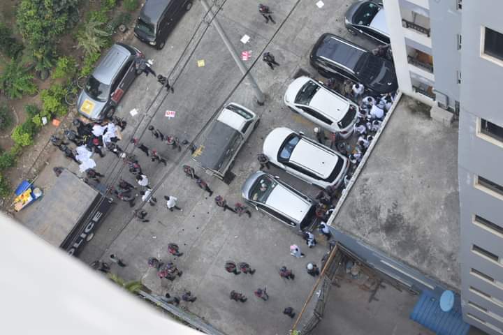 Under Shwe Moe Kaung Condo, Aung Zeya Road in Mandalay,medical students have been arrested. It was loaded with three prison trucks. Police also ordered them to take off their duty coats and backpacks. #WhatsHappeningInMyanmar #Feb28Coup #MilkTeaAllianceMyanmarpic.twitter.com/0NmzR0vfMM