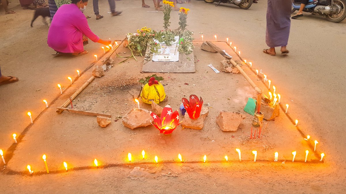 စစ်ကိုင်းတိုင်း ဒေသကြီး မုံရွာမြို့မှာ ကျဆုံးသွား‌ သောသူရဲကောင်းအာဇာနည်များကိုဂုဏ်ပြုသောအားဖြင့် မုံရွာမြို့ဘုရားနီလမ်းဒေါင့်ရှိ အောင်မဟာလမ်း(အသောကလမ်း)ကို ယခု #အာဇာနည်လမ်း ဟုခေါ်တွင်ကာ ကျဆုံးသွားတော့အာဇာနည်သူရဲကောင်းများအတွက် မီးထွန်းဆု‌တောင်းပွဲ ပြုလုပ်ခဲ့ကြသည်။ ဓာတ်ပုံ-MEpic.twitter.com/lQ7bVVh1sU
