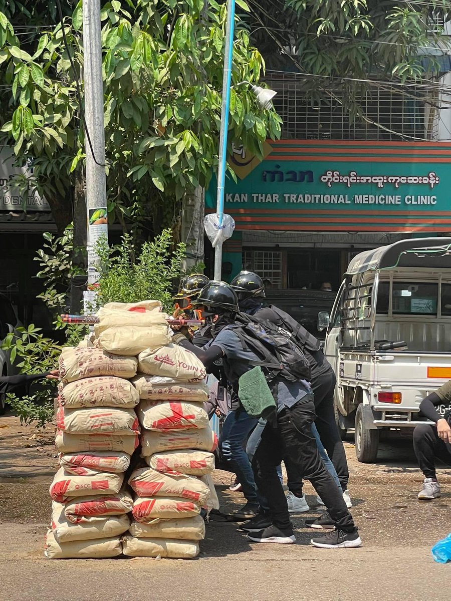 This's what Myanmar citizens call "Self-defense". I was too worried. They are still kind. #Mar18Coup #WhatsHappeningInMyanmar #MilkTeaAlliace