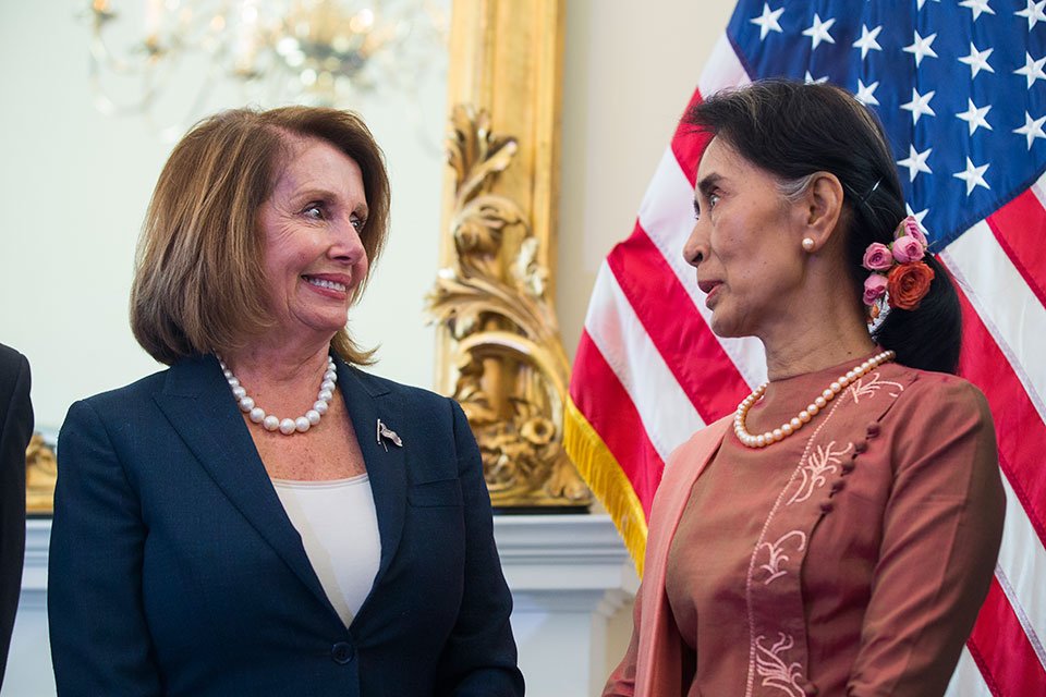 Aung San Suu Kyi (R) meets with Democratic House Minority Leader from California Nancy Pelosi Photo: EPApic.twitter.com/epbPIqRipb