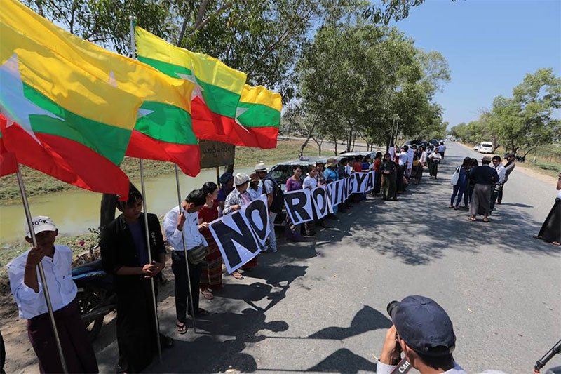 Anti-#Rohingya protests greet #Malaysia aid ship in #Yangon http://bit.ly/2lusT6D pic.twitter.com/cGs9MEOiXG
