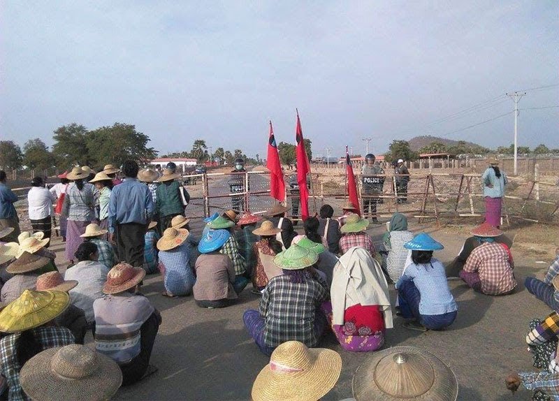 #Letpadaung villagers protest against mine company http://bit.ly/2mka4DD pic.twitter.com/fZhK92yIQ6