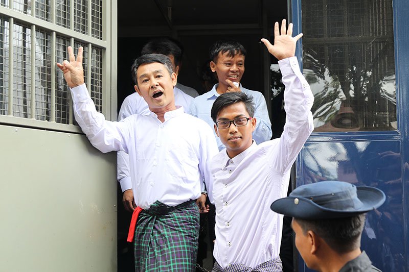 #Myanmar army drops charges against 3 #journalists arrested in June | http://bit.ly/2eJVT9B pic.twitter.com/LhvAmYNrti
