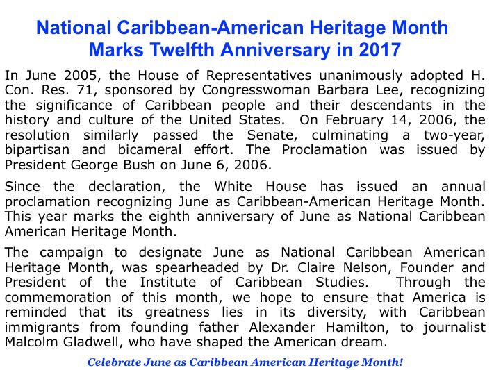 Did you know that this year marks the twelfth anniversary of June as National Caribbean-American Heritage Month? Together, we stand!