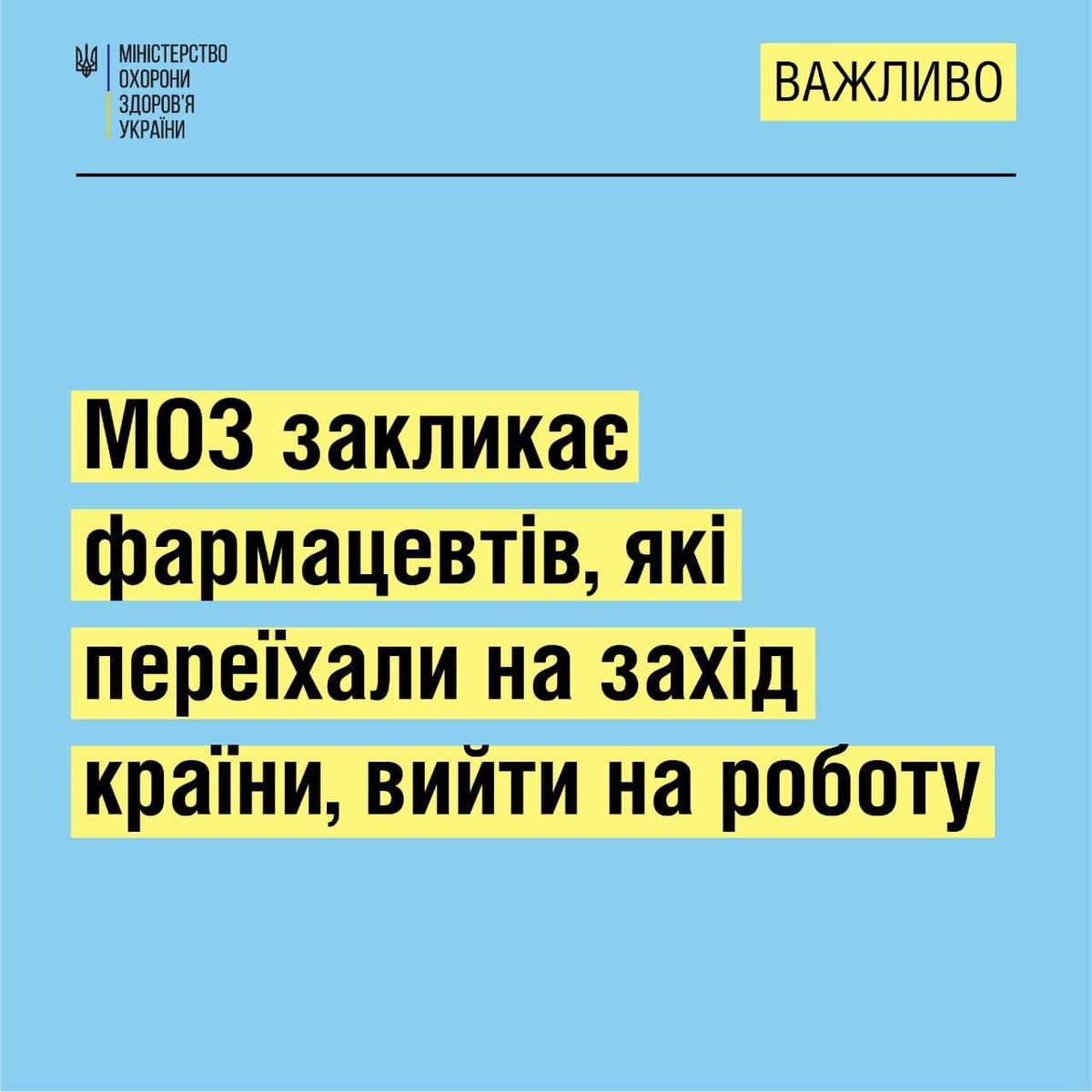 МОЗ закликає фармацевтів, які переїхали на захід країни, вийти на роботу Докладніше: https://cutt.ly/VAE2VCH pic.twitter.com/yB5hIJEGuN