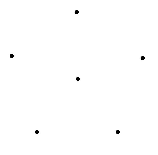 Define a link as a straight line connecting any two points of the six points in the figure. How many links can be placed without forming a triangle having three of the points as vertices?