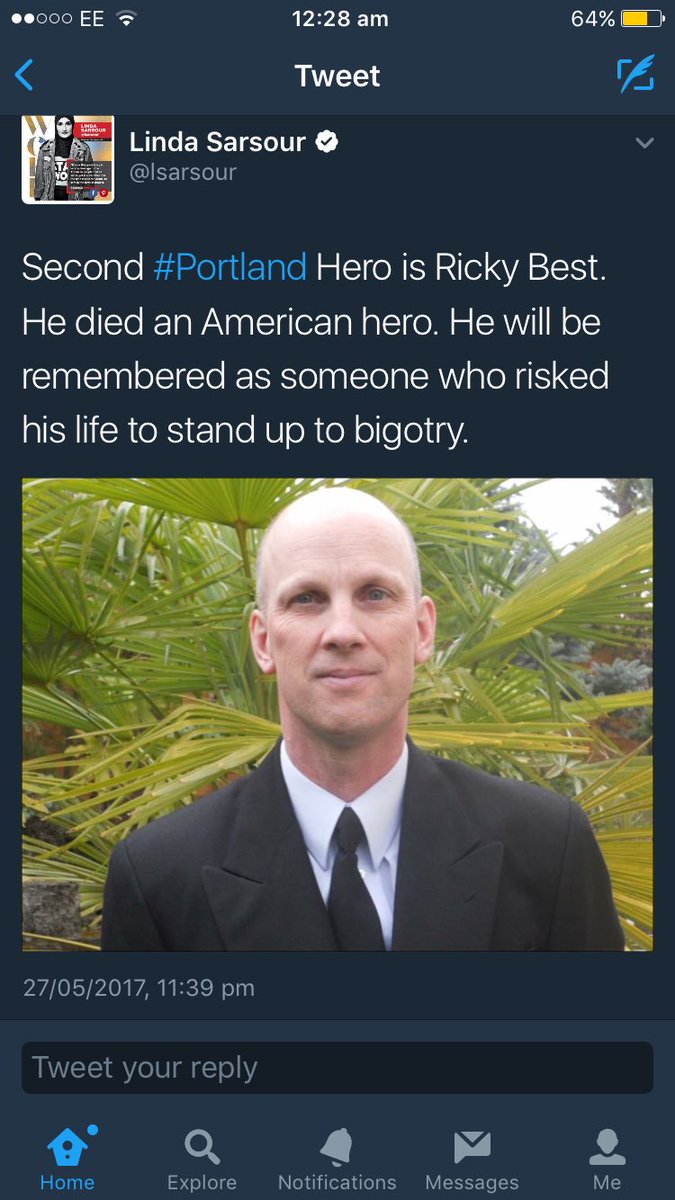 These 2 legends lost their lives defending Muslim women from being attacked by a white extremist. You won't see it on BBC or sky news. RiP