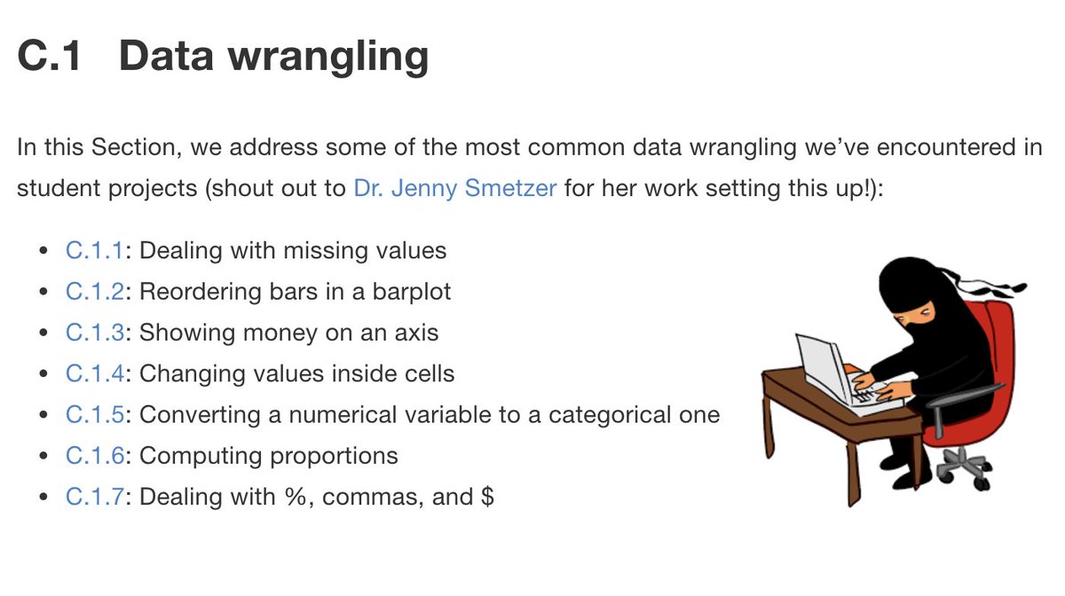 data wrangling "Tips & Tricks" page by Jenny Smetzer! https://moderndive.com/C-appendixC.html …