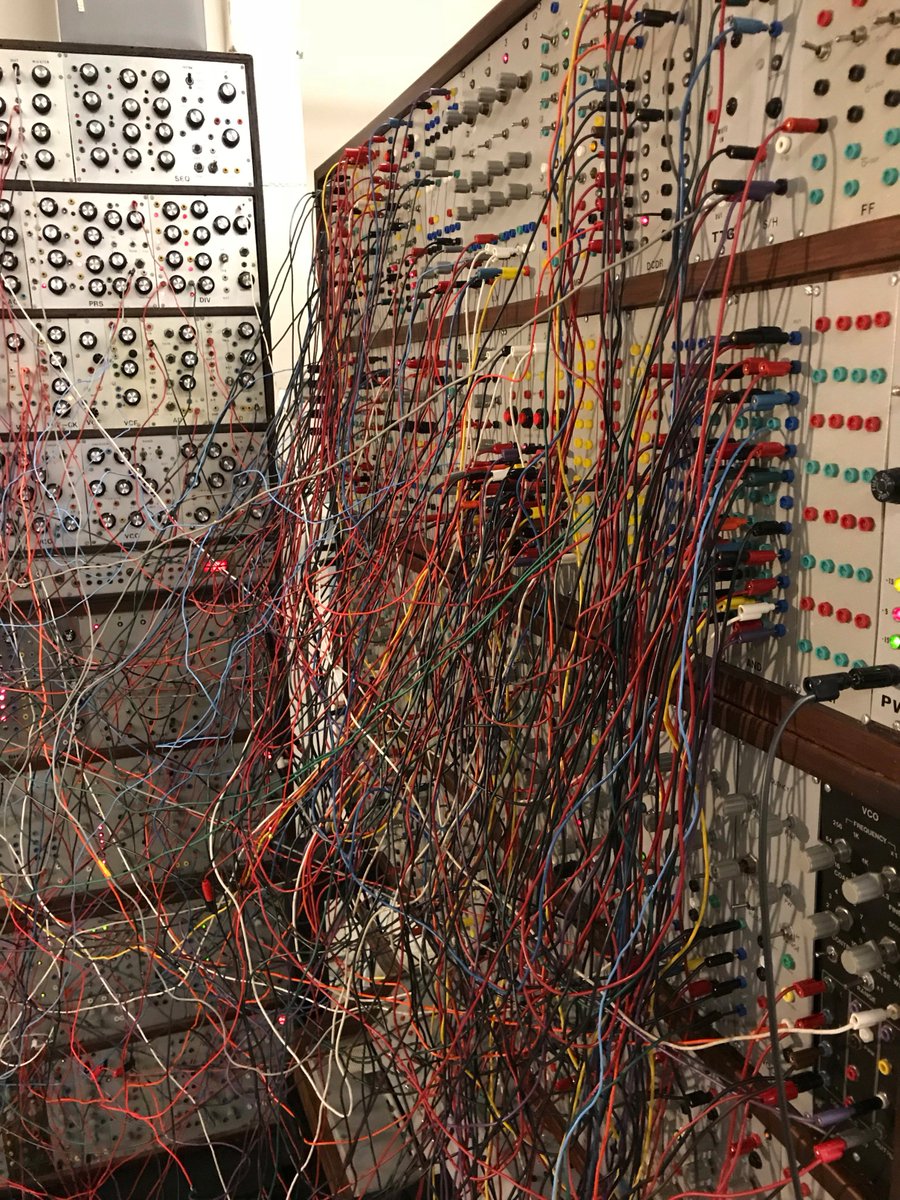 For those who are curious, this is what the current patch looks like. It used all my cords (again)! Gotta get more. http://www.media.mit.edu/!joep/Outgoing/SynthPatch-May-14.jpg …