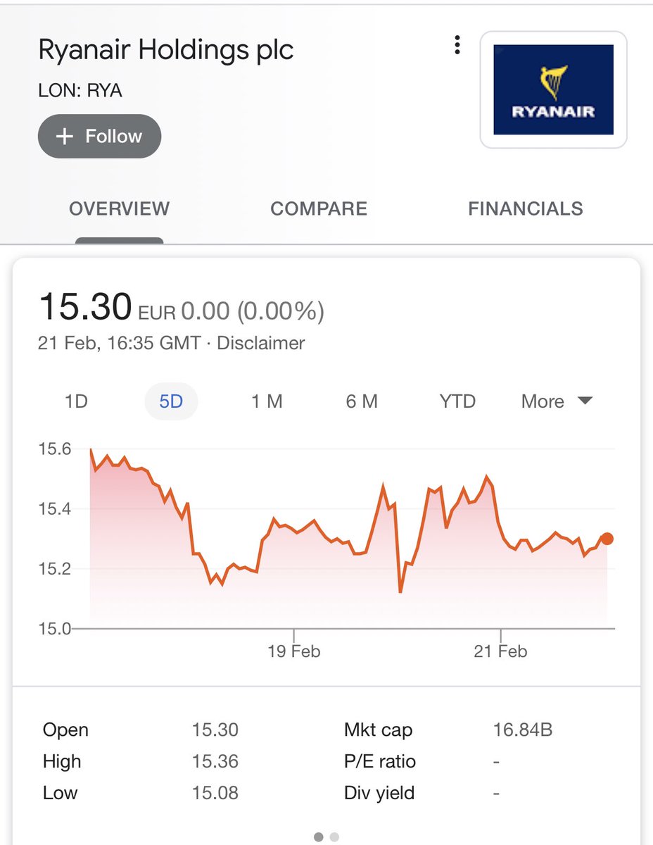 See this graph - this is all O’Leary cares about. Make it go down and that will hurt him. Send emails to all your CEO’s and travel teams demanding that Ryanair is removed from your list of approved providers. Demand of your MP’s that they don’t travel with them