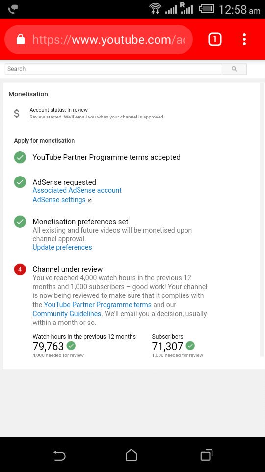 @TeamYouTube Hi, I have completed 1k+ subs & 4k+ hours watch time in previous 12 months.