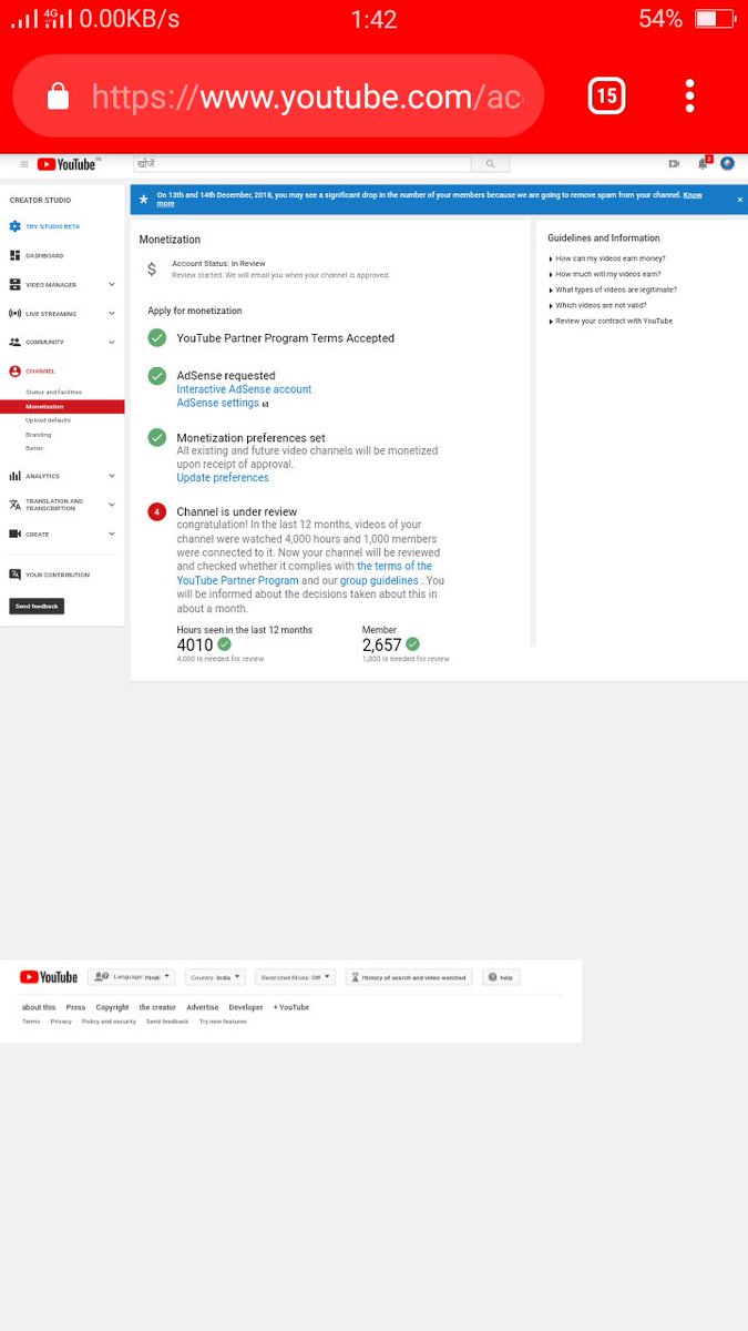 @TeamYouTube I have completed 4000 watch hour and more then1000 subscribers on my youtube channel. please enable monetization on my channel.All content in my channel are original and copyright free. Thank you youtube. My channel link is- (https://www.youtube.com/channel/UCzpO5Reo59RhGQL5B88aKKg …) Mohitpic.twitter.com/a7hwyCoDJv