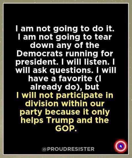 If I could I would retweet this multiple times! We promised we wouldn’t self destruct in the primaries and we should stick to that promise. It is imperative that we take the Senate and the Presidency. United we can do this!