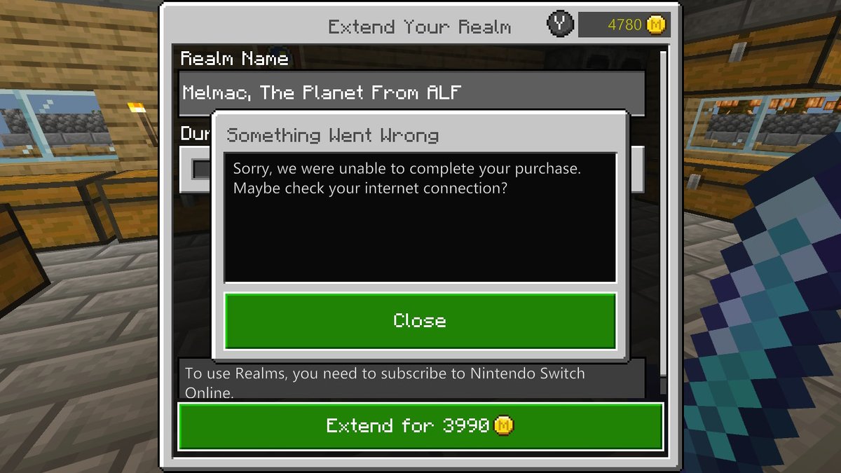 @MojangSupport It won't let me extend my realm time, despite having enough minecoin. On Switch, the version I made the realm on.pic.twitter.com/PmEDSrVW7F