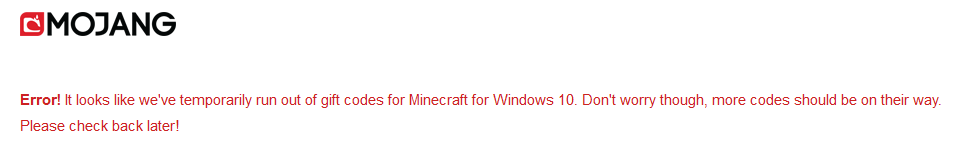 Hey @MojangSupport , it's been for weeks now that we can't redeem gift codes for the Windows 10 Edition of Minecraft.pic.twitter.com/3bzSu9fYqp